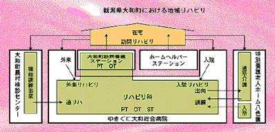 現在は、総合病院を核に特別養護老人ホーム、農村検診センター、ヘルパーステーション、訪問看護ステーション、特別養護老人ホームが一体となった大和医療福祉センターを形成しています。病院には,在宅介護支援センターが、特別養護老人ホームには通所介護センター(デイサービスセンター)が併設されており、各施設に連携する形で、リハビリセンターが設置されているのが特色です。