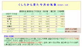 釧路支庁のホームページにある「くしろ豆知識」の防災豆知識・気象データが更新されています。この防災豆知識ページは、とても充実しており、釧路の気象も2ヶ月ごとのデータが分かりやすくまとめられています。今回、アップされたのは昨年10月のデータ。「霧のまち」と思っていたら、秋から冬にかけては日照時間が全国屈指なのだそうで、同月の日照時間も、東京の2倍以上、札幌の1.5倍ほどになっています。「温泉に浸かり気分爽快、連日繰り広げられる満天に輝く星空はまさに圧巻、みなさん見に来てくださいね」とのコメント。 昨年2月の日照時間は札幌の2倍近い218時間となっています。
