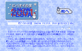 美唄市のホームページの新着情報に、美唄観光物産協会主催の『ピパオイの里 SNOW FESTA 2001』 のページがリンクされています。今年は2月3日(土)、4日(日)の開催。滑り台付き雪像や、各種イベント情報が掲載されています。