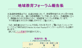 北海道教育委員会ホームページに、平成12年度の「地域教育フォーラム」報告集が掲載されています。教育関係者をはじめ父母や地域の人々が教育課題について、それぞれの地域ごとに話し合った内容をまとめたものです。PDFファイルです。