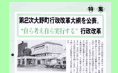 大野町ホームページに、広報「おおの」8月号がアップされ、特集として「第2次町行政改革大綱」を公表し、10項目の改革事項について詳しく解説しています。