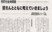 女満別町ホームページの「まちの紹介」コーナーに、「広報めまんべつ」12月号がアップされ、特集としてシリーズ「市町村合併を考える」がスタートしています。第1回目の今回は、合併論議が起きている背景などについて解説しています。