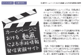 札幌市ホームページに、「動画による市政情報発信実験」のページが開設されています。高速ネットワークの普及に備え、市が所有する動画の一部を短く再編集して配信、今後の問題点などを探るようです。形式は、「動画と文字情報を同一ウィンドウに表示させることが比較的容易である」との理由でQuickTimeを採用、解像度も2種類用意しています。