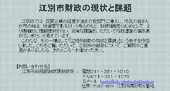 江別市ホームページに、「江別市財政の現状と課題」がアップされています。民間の経営手法を行政部門に導入し、市民により積極的に情報提供を行う一環として製作した冊子のPDFファイルのようです。
