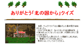 同じく上川支庁ホームページに、「ありがとう『北の国から』クイズ」がアップされています。先日、最終回が放映されたテレビドラマ「北の国から」にちなんだクイズ集です。
