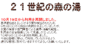 利用休止となっていた「21世紀の森の湯」の再開情報がアップされています。