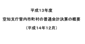 北海道市町村課ホームページに、PDF版「平成13年度北海道市町村の普通会計決算の概要」がアップされています。17ページにわたり、ポイントや全体の傾向がグラフなどとともにまとめられています。また空知支庁ホームページには、同管内版がアップされています。