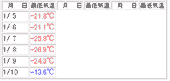 陸別町ホームページに、毎日の最低気温が表になって掲載されています。赤字は最低気温全国1位、青字は2〜5位とのことですが、さすがに日本一寒い町を標榜しているだけのことはあります。