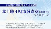 北十勝4町(上士幌、士幌、音更、鹿追)で組織する流域環境保全プロジェクトのホームページに、流域環境保全のあり方の指針となる「北十勝流域憲章」の素案がアップされ、意見募集がスタートしています。